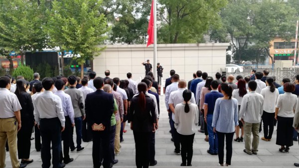 省工商联巡视员常卫华,副主席马强、王慧林、张京红,副巡视员、秘书长刘庆丰以及机关全体干部职工参加活动。活动现场,机关全体干部职工排成整齐的队伍,面对国旗行注目礼,同唱国歌,凝视鲜艳的五星红旗冉冉升起,共同祝愿伟大祖国更加繁荣昌盛。
