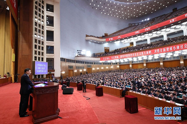 10月18日,中国共产党第十九次全国代表大会在北京人民大会堂开幕。习近平代表第十八届中央委员会向大会作报告。新华社记者 庞兴雷 摄